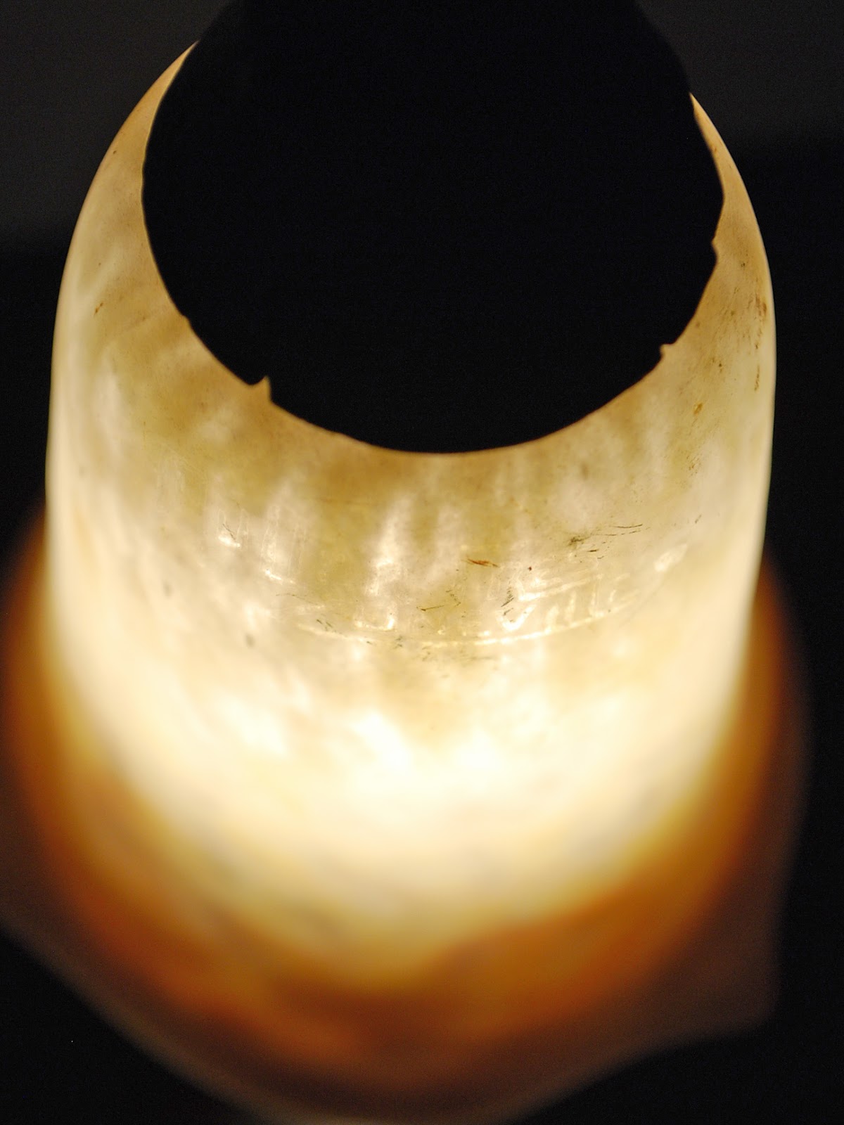 ガラス原料の硅素に動物の骨灰(リン酸塩)や亜ヒ酸、蛍石などを混ぜて溶解し、急冷してさらに再加熱すると、青白い艶を抑えた乳濁したようなガラスが出来上がります。