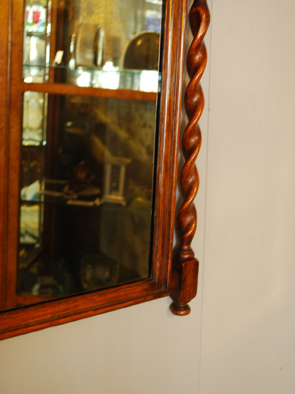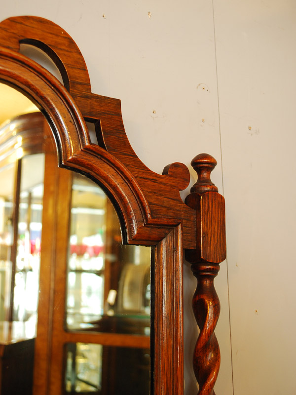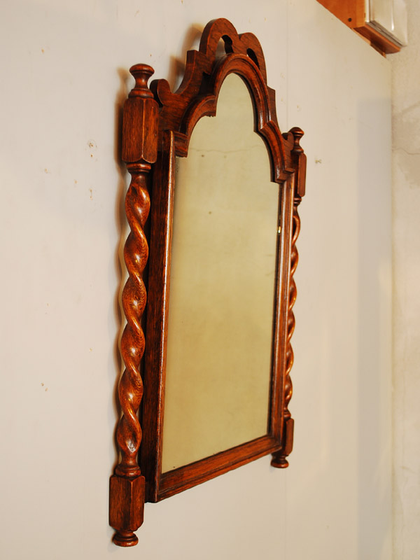 オークの縦長のミラーです。左右のツイストがアクセントになっています。