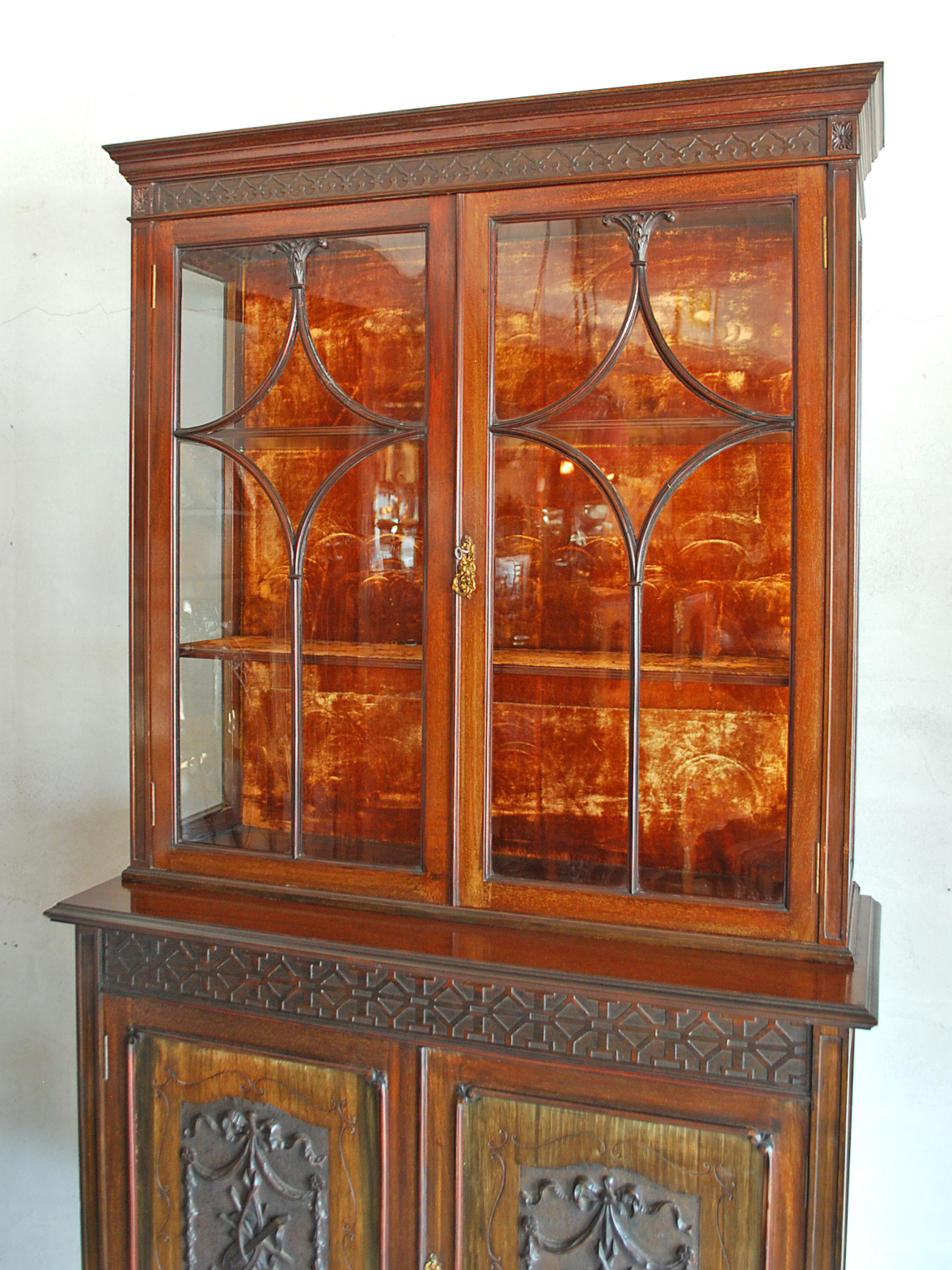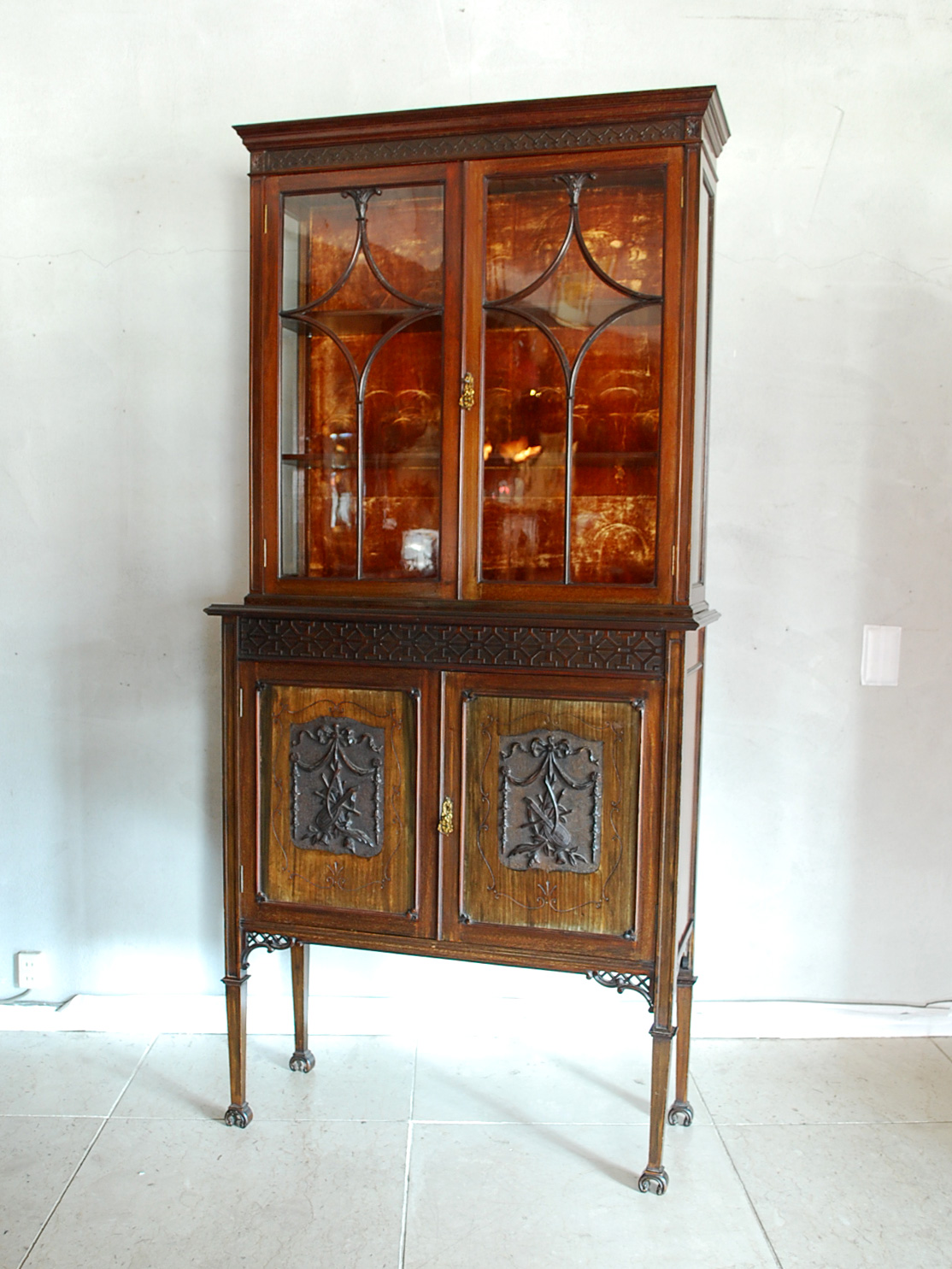 ロココスタイルのディスプレイキャビネットの張替えを行いました。