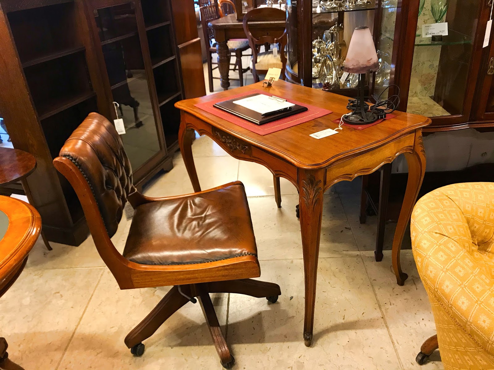 フレンチ家具は英国家具と比較して繊細で華奢なつくりのものが多くあります。現在当店に在庫しているこちらのフレンチデスクも例にもれません。